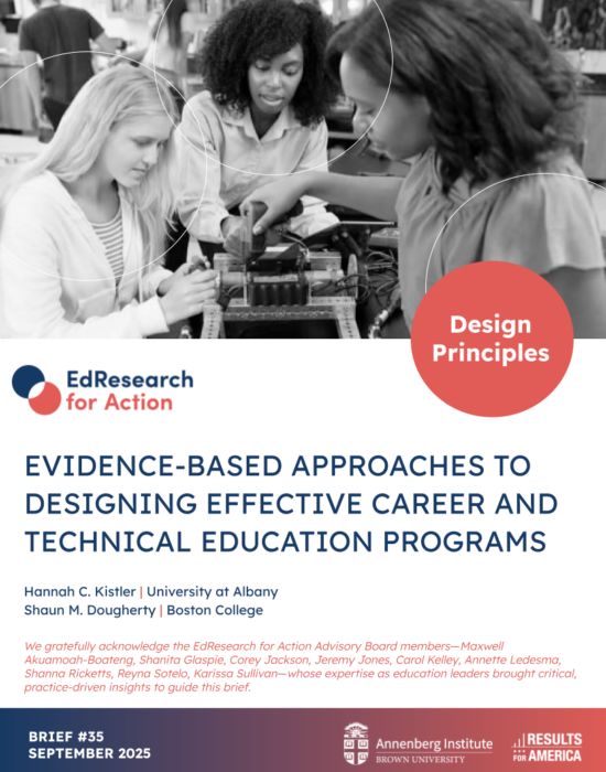 The EdResearch for Action Design Principles Series focuses on individual programs and practices that have been proven to have positive effects on student outcomes. It helps practitioners adapt and implement evidence-based programs.